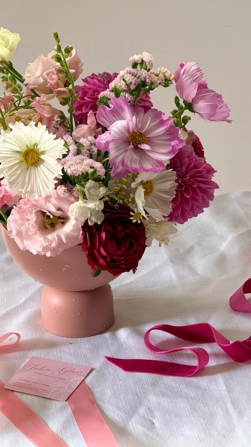Flowers will be selected based on what is the freshest and what is in season on the day, any special requests will be taken into consideration but unfortunately cannot be guaranteed due to the constantly changing nature of fresh produce available at the Sydney Flower Market.